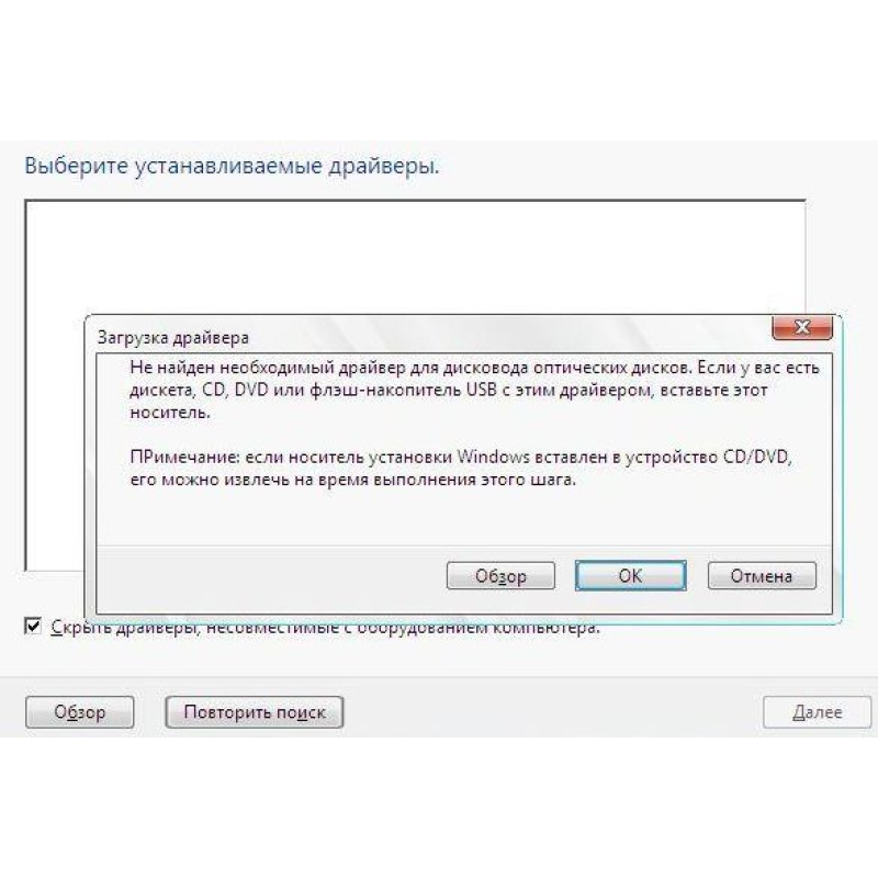 При установці операційна система просить драйвери
