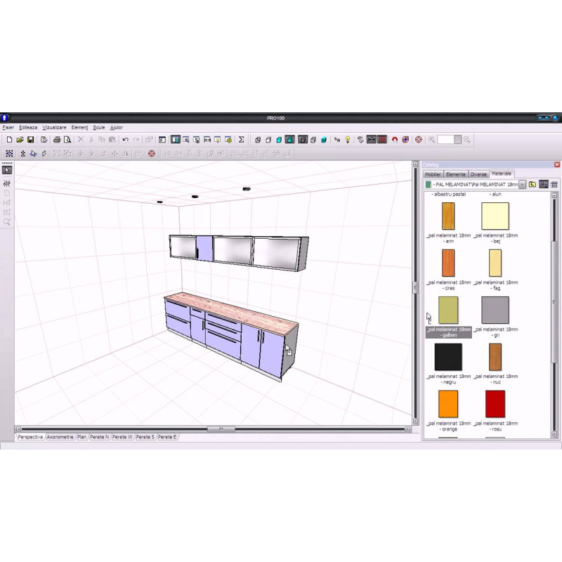 Большинство действий в PRO100 выполняется мгновенно с помощью мыши. Другие инструменты, необходимые при работе над проектом для вставки, позиционирования, выравнивания, вращения, замены элементов и материалов, предварительного просмотра структуры или размеров, доступны в любое время через простое и интуитивно понятное меню. Каждый элемент проекта имеет свое окно параметров, в котором можно задать ему конкретные атрибуты: имя, цена, размер, позиционирование, тип материала, назначить отношение к группе отчетов и т.Д. Этот мощный инструмент помогает дизайнеру в его сложной работе.